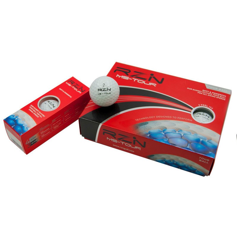 RZN MS-Tourは、柔らかな打感と優れたスピン性能が特長の3ピース構造ツアーボールです。 ソフトウレタンカバーがイメージ通りの弾道とスピンコントロール性能を実現します。RZN Golf独自の3Dスピードロックテクノロジーにより打球時のパワーの伝達効率を改善し、ドライバー飛距離性能にも優れています。一般ゴルファーのヘッドスピードで最適なスピン量が得られる設計となっており、ビッグキャリーを狙うことができます。 特長 ・3Dスピードロックテクノロジーがエネルギー伝達効率を改善しドライバー飛距離を向上 ・ATTI硬度85の低コンプレッション設計で、気持ちの良い打感と優れたスピン性能がイメージ通りの弾道を実現 ・13,558個ものマイクロディンプル構造が生み出す優れた空力特性 ・ウェットなコンディションでもグリップ性能を確保 ・グリーン上で使いやすいビッグアライメントライン ・推奨ドライバーヘッドスピード:〜44m/s 備考 1ダース(12個入)
